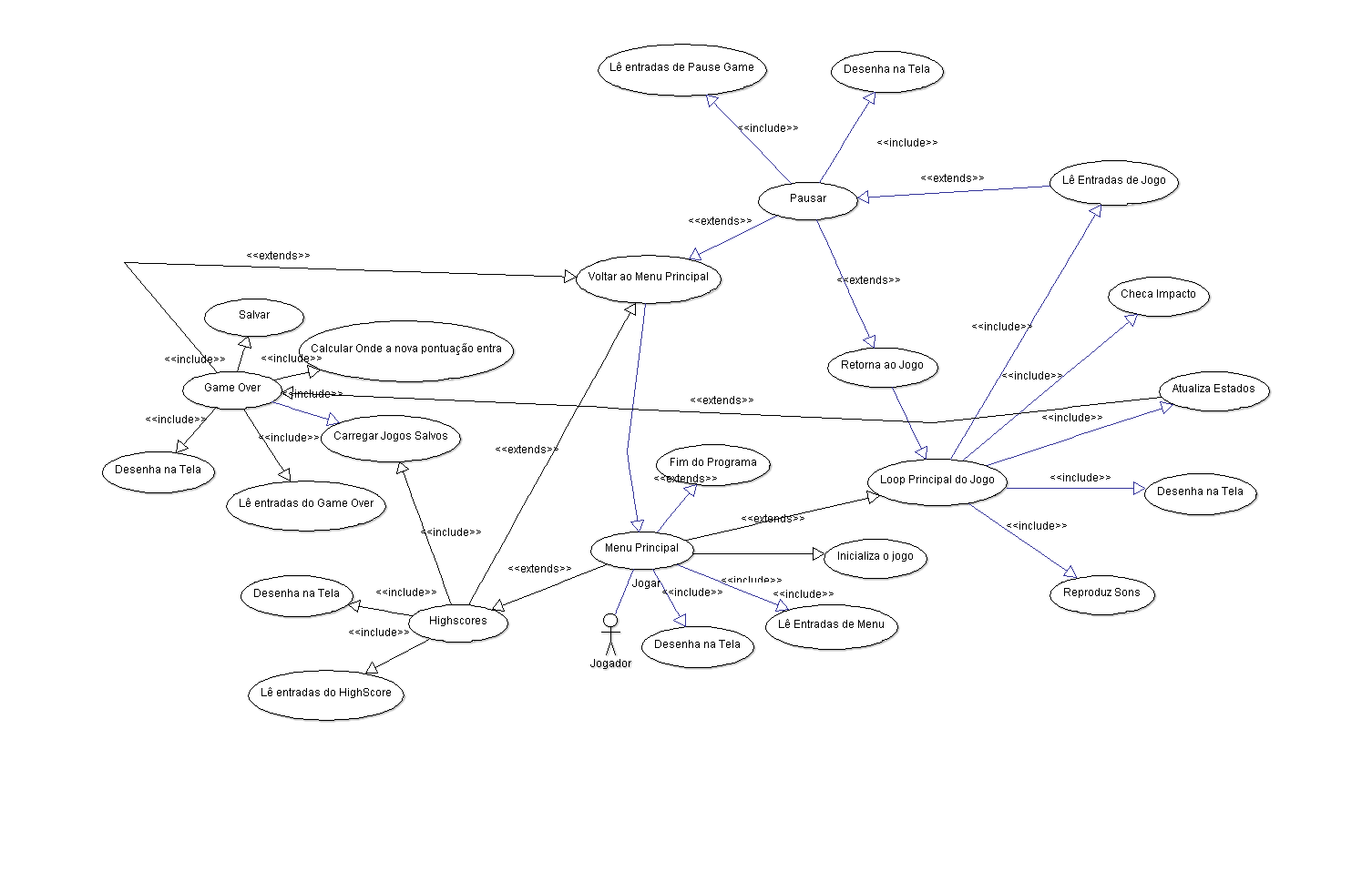 - Casos Incluídos Desenha na Tela, Lê entradas de Menu, Inicializa o jogo