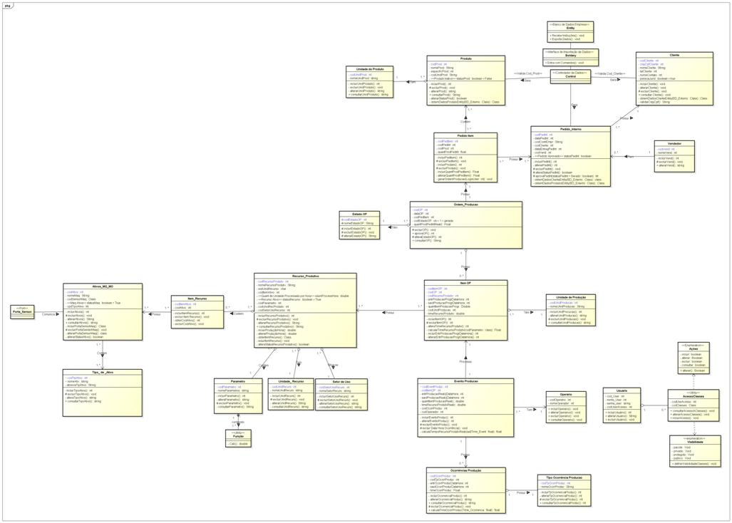 A Tabela das Classes Recurso Produtivo, Pedido, Ordem de Produção, e Eventos são representações abstratas de documentos e tarefas no contexto do Planejamento de Produção. Portanto estas Classes são composições de informações de outras Classes (Produto, Maquina, Operário e Cliente).
