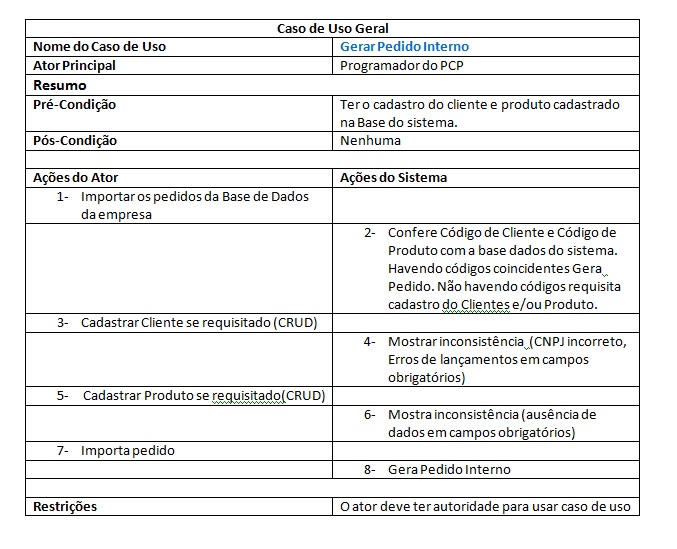 No processo de importação do pedido há necessidade criar um interface com algumas funções de controles que contem os protocolos de comunicação com o banco de dados da empresa, já que o software deverá ser interligado com software de gestão da empresa.