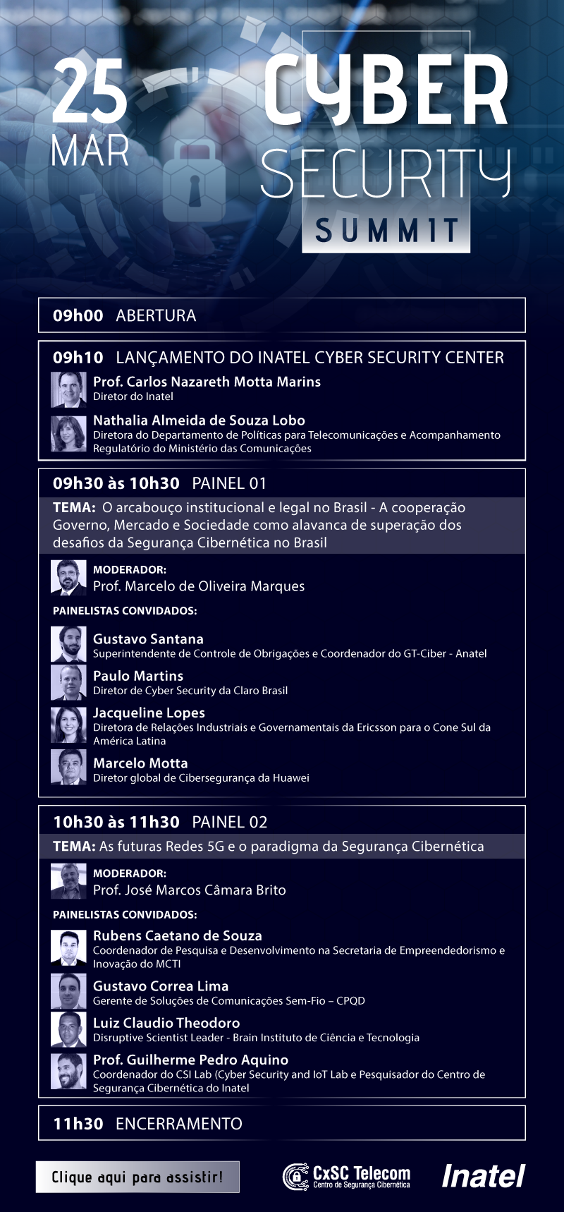Desafios e impactos na Segurança cibernética com a movimentação do Teletrabalho Impactos com a LGPD (Lei Geral de Proteção de Dados) Consequências da Resolução Anatel 740: desafios, investimentos, governança Mercado brasileiro: Disponibilização de especialistas em Segurança Cibernética Já temos déficit.