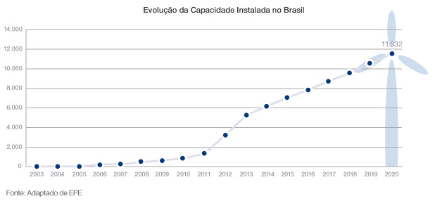 A energia eólica está numa crescente desde o século XIX, podendo hoje, competir em termos de eficiência, custos e viabilidade, com as fontes tradicionais de energia. O desenvolvimento tecnológico, aliado à busca de fontes renováveis e limpa, incentivou novas pesquisas, e investimentos na área. Tal fato, fez com que, a energia eólica atingisse um crescimento de 25% a 30%. Além de alcançar uma redução de aproximadamente 15% no custo da energia gerada pelas usinas eólicas.