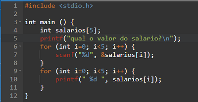 EXEMPLO PRÁTICO Armazenar os valores dos salários de funcionários de uma empresa. Então criaríamos um array, tendo seu tipo como float, já que poderíamos ter valores decimais representando determinados valores de salário, criaríamos também, uma variável do tipo inteiro para ser o "índice do vetor" (variável que usaríamos para percorrer o vetor para ler, guardar informações e realizar qualquer tipo de manipulação nele).