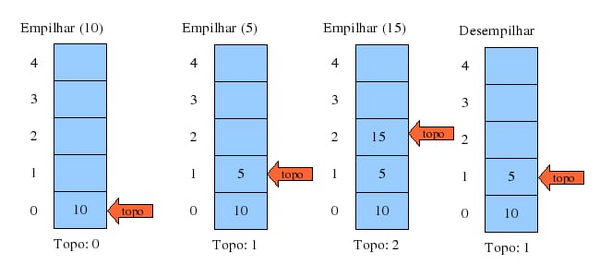 •Só é possível mexer no topo da pilha, as informações que estão no meio ou no fundo não podem ser acessadas.