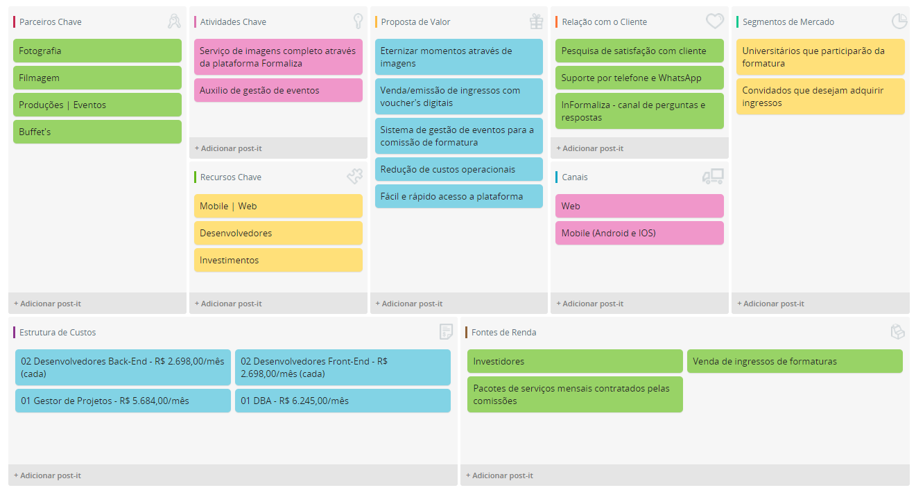 - O Formaliza trabalha com pacotes que serão escolhidos pelo usuário no ato do contrato. Tais pacotes serão definidos mediante uma pesquisa com possíveis clientes.