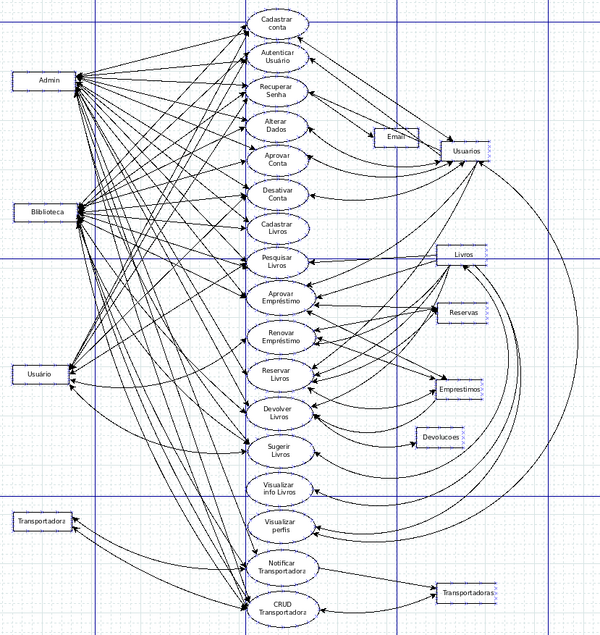 - Se concluirmos que Biblioteca (Proprietário) tem as mesmas funções do Administrador podemos retirar a Entidade Externa Admin e simplificar o DFD: