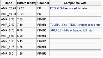 - O codec de audio Adaptive Multi-Rate (AMR ou AMR-NB) é um esquema de compressao de dados de áudio patenteada e otimizada para codificação de voz. AMR foi adotado como o padrão de codec de voz pelo 3GPP em outubro de 1999 e é, atualmente, amplamente utilizado em GSM e UMTS. Ele usa adaptação de de enlace para poder selecionar um de oito diferentes taxas de bit baseadas nas condiçoes do enlace.