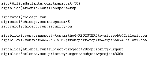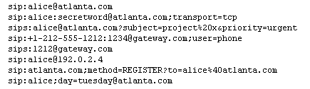 - O SIP usa identificadores (URI) chamados de SIP URI. Cada lado da chamada possui o seu identificador.