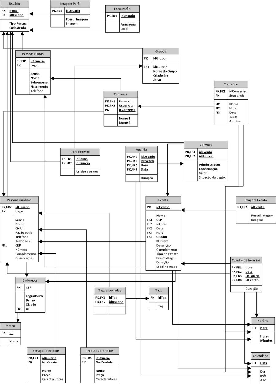 • Um portal web com interface gráfica intuitiva para facilitar a comunicação entre os usuários e com buscas de informações, tais como dados dos usuários, grupos, locais e horários livres, serviços interessantes para o tipo de evento e consulta de preços.