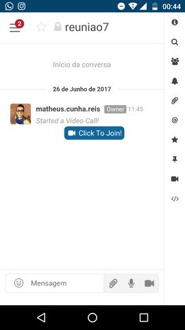 - Quando se está em um chat em grupo as possibilidades são muitas incluindo configurar notificações, adicionar membros especificos ao grupo, anexar arquivos ou códigos, fixar mensagens, marcar mensagens como favoritas e ate fazer video-conferência (podendo ser realizada com um smartphone) .
