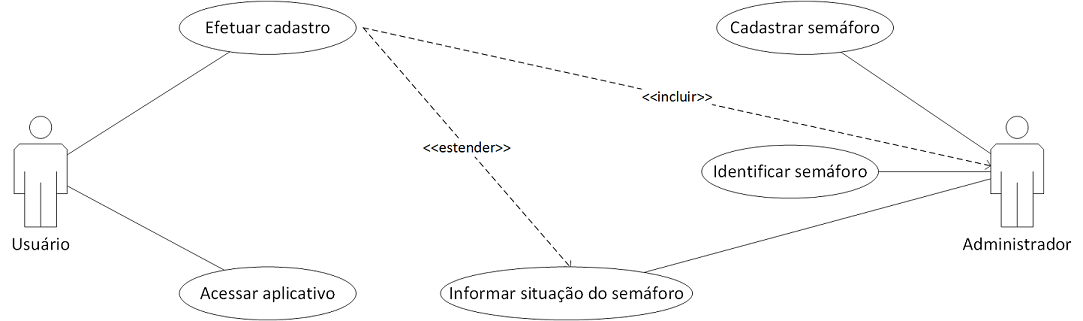 - "Solicitação de informação": O usuário realiza a solicitação da situação (se o sinal está fechado ou aberto) de um determinado semáforo.
