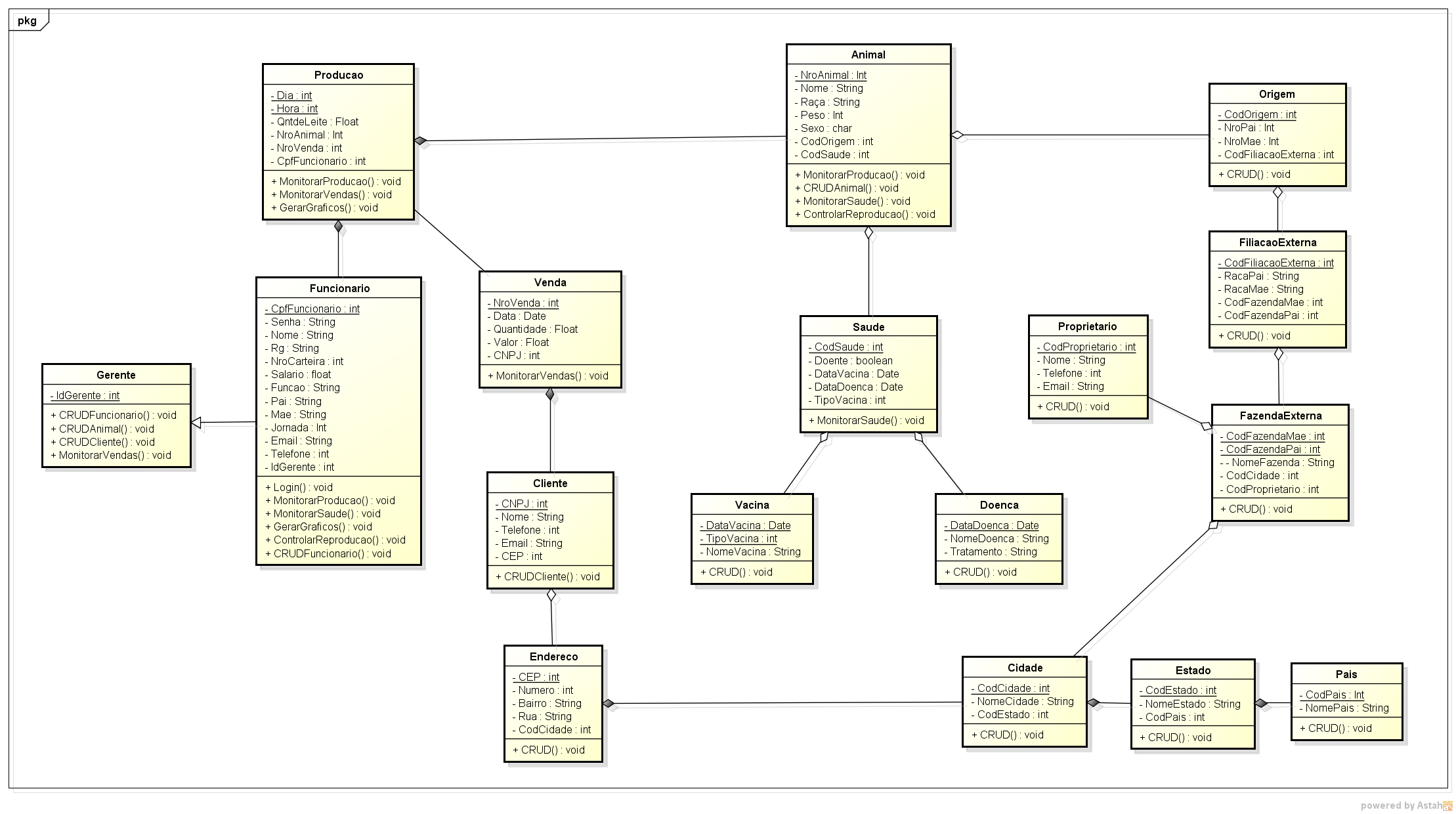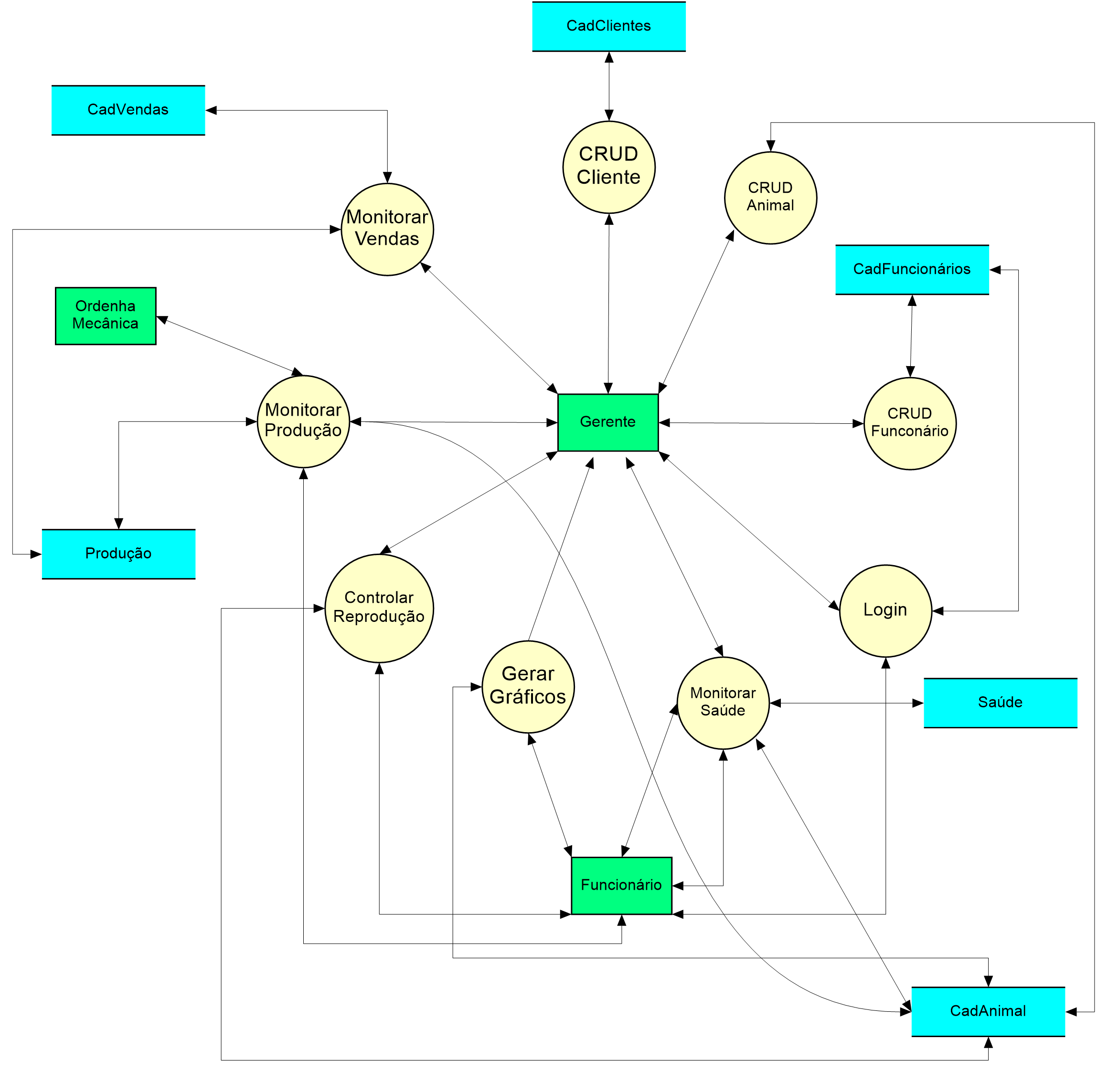 A primeira funcionalidade será, o cadastramento do rebanho. Serão gravadas informações como: número, raça, peso, filiação, etc.