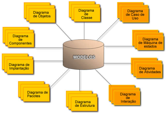 - Usa-se diferentes elementos associando-os de maneiras diferentes formando diagramas que representam aspectos estruturais de um sistema, além de diagramas comportamentais que registram os aspectos dinâmicos de um sistema.