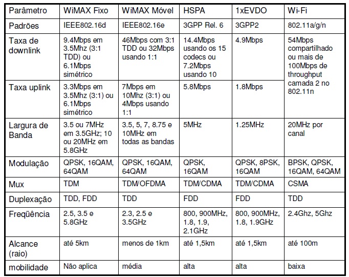 estudo comparativo dos padrões IEEE 802.16e, WiMAX móvel, juntamente com IEEE 802.20, conhecido como Móbile-Fi ou MBWA (Mobile Broadband Wireless Access). Estes novos padrões definem especificações de modo à garantirem interoperabilidade dos sistemas BWA em um ambiente móvel, operando em bandas licenciadas abaixo de 3,5 GHz. O nome completo do padrão IEEE 802.20 é Standard Air Interface for Móbile Bradband Wireless Access Systems Supporting Vehicular Mobility – Physical and Media Access control Layer Specification.
