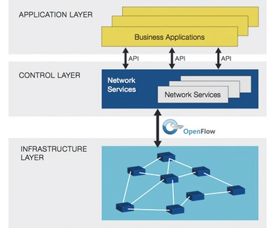 - Para aplicar estes conceitos em uma estrutura TCP/IP, são necessárias adaptações à estrutura física, como a introdução de controladores (servidores) que sejam capazes de estabelecer as regras de encaminhamento de fluxos, além de substituição, introdução ou atualização de equipamentos responsáveis pelo encaminhamento, e por fim aplicações que sejam capazes de explorar estes recursos, influenciando diretamente em parâmetros da rede, sejam eles para compartilhamento, segurança, ou até largura de banda, priorização de fluxos, delay, etc.