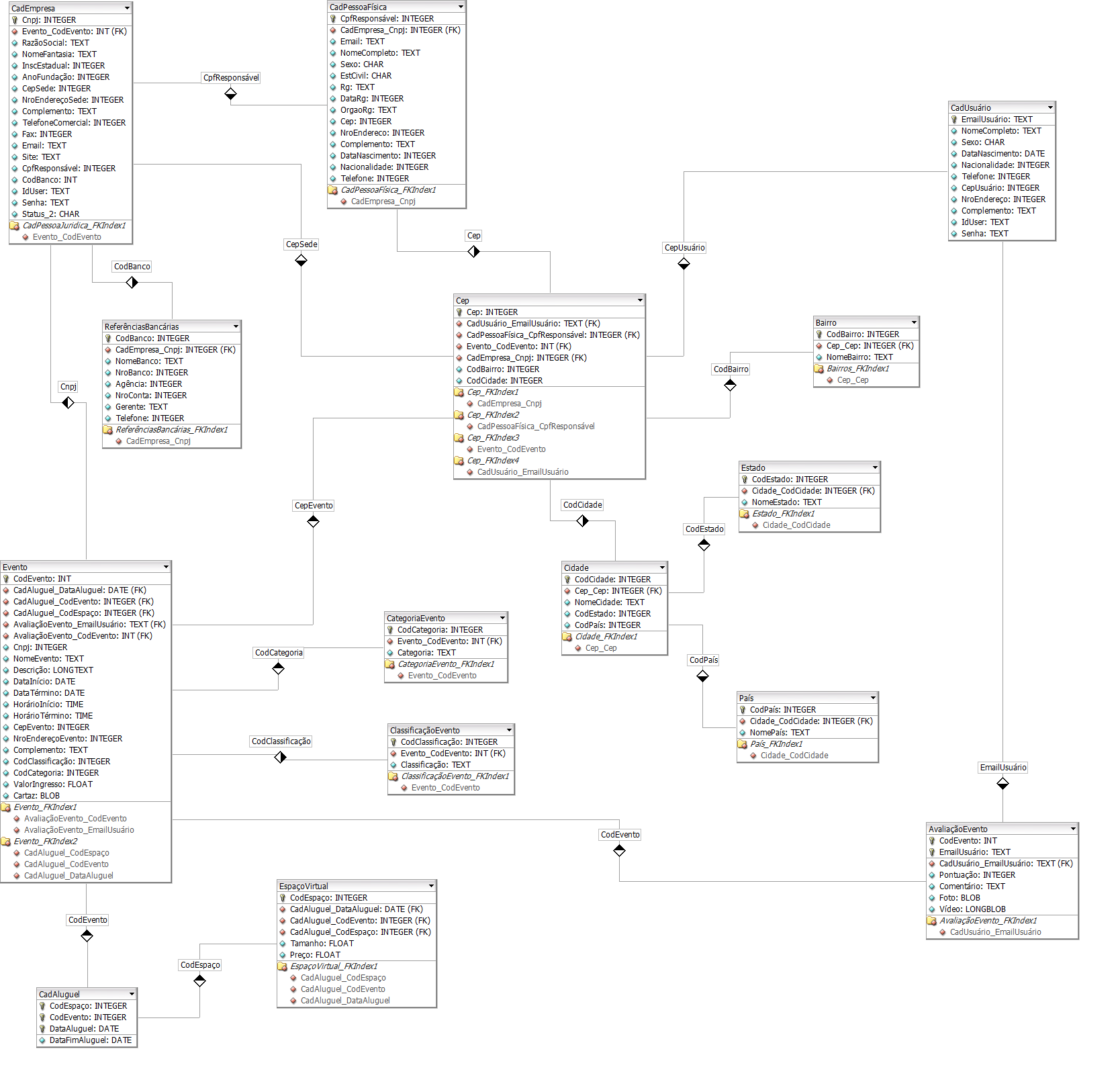 - Avaliar dados que serão armazenados como empresas, eventos, locais, administradores, usuários, etc
