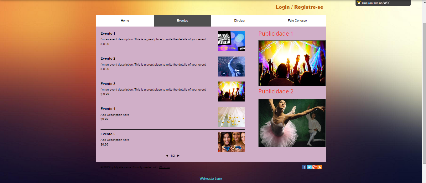 - Existem muitos sites de divulgação de eventos, como o http://www.agitouberlandia.com.br/, que trabalha com uma visão mais regional, e o http://www.revistaeventos.com.br/, que tem uma perspectiva mais ampla. No entanto, nenhum deles permite a avaliação em tempo real dos eventos que divulgam.