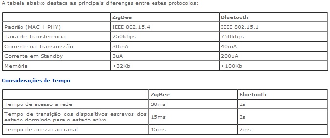 Uma rede ZigBee pode consistir num máximo de 64770 nós, frente aos 8 nós máximos numa rede Bluetooth.