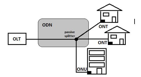 A transmissão dos sinais ópticos na rede PON é feita por meio de OLT (Optical Line Terminal), que os redireciona através de fibra óptica até os splitters, os divisores ópticos passivos. Os terminais de usuários (ONUs – Optical Network Unit) integram os dados de áudio, vídeo, sistema de segurança, sistema de automação, que são transmitidos em uma única rede óptica passiva.