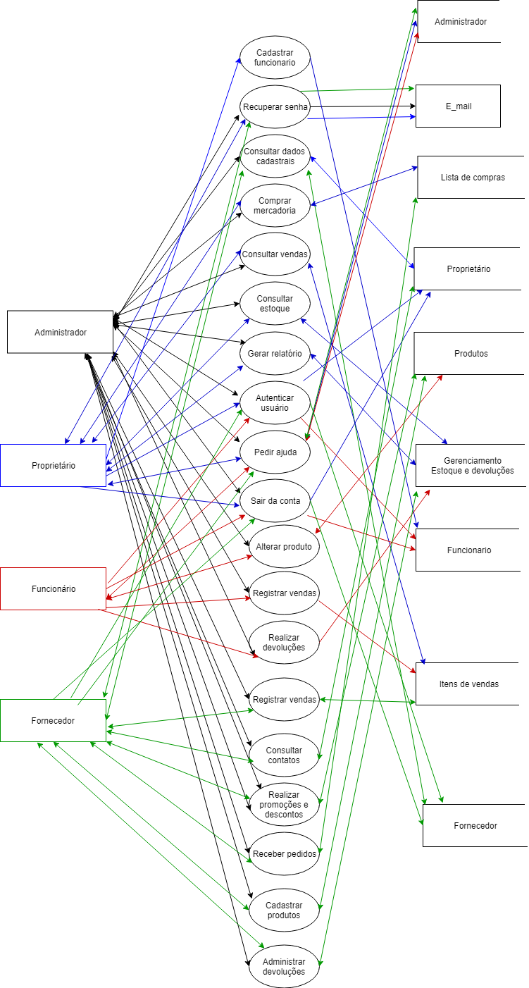 - Pequenos e médios proprietários de mercearias, seus funcionários e demais fornecedores. Sendo cada um com sua respectiva interface.